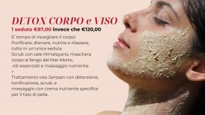 Purificare, drenare, nutrire e rilassare, tutto in un‘unica seduta Scrub con sale Himalayano, maschera corpo al fango del Mar Morto, olii essenziali e massaggio nutriente. + Trattamento viso Janssen con detersione, tonificazione, scrub, e massaggio con crema nutriente specifica per il tipo di pelle.