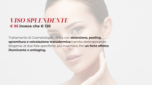 VISO SPLENDENTE – € 95 invece che € 120, Trattamento di Cosmetologia Clinica con detersione, peeling, spremitura e veicolazione transdermica tramite elettroporatore Biogenia, di due fiale specifiche, più maschera. Per un forte effetto illuminante e antiaging
